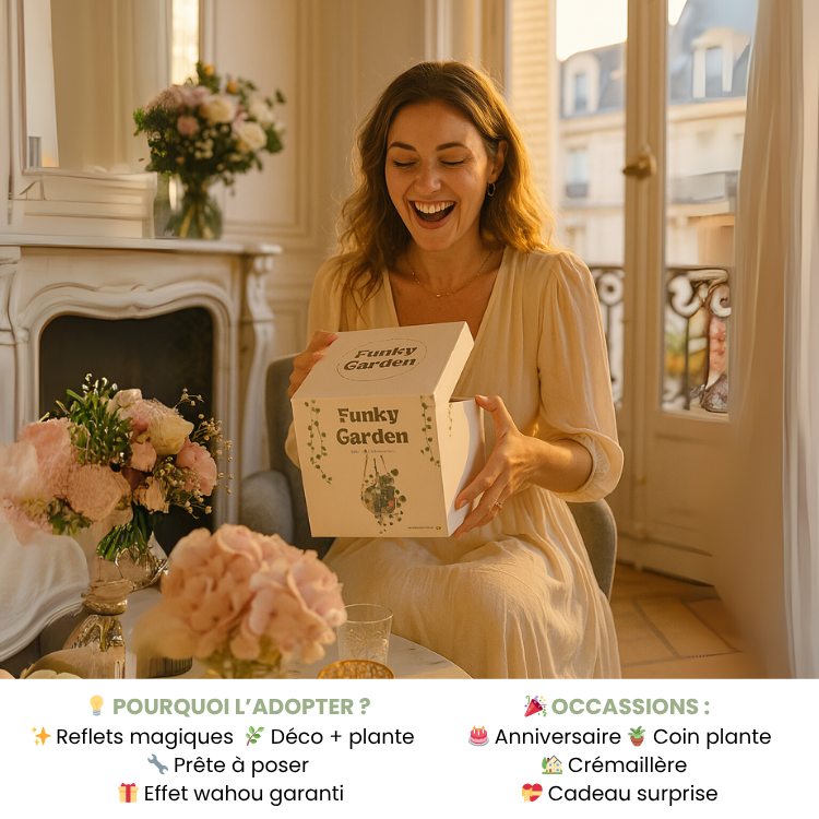 Facile à installer grâce à sa chaînette élégante, Funky Garden se suspend en quelques minutes. Aucun bricolage compliqué : vous profitez immédiatement de votre nouvelle décoration.